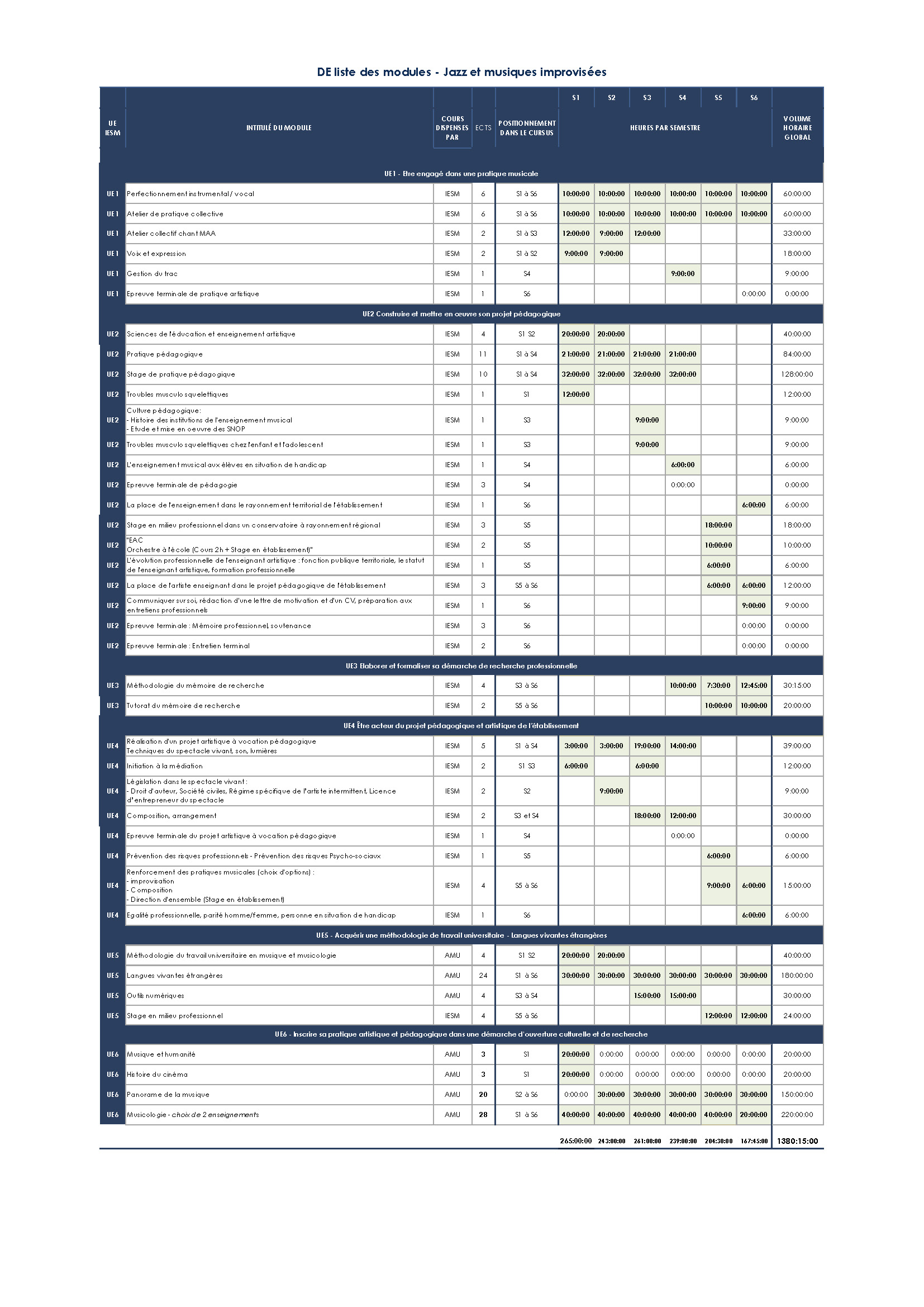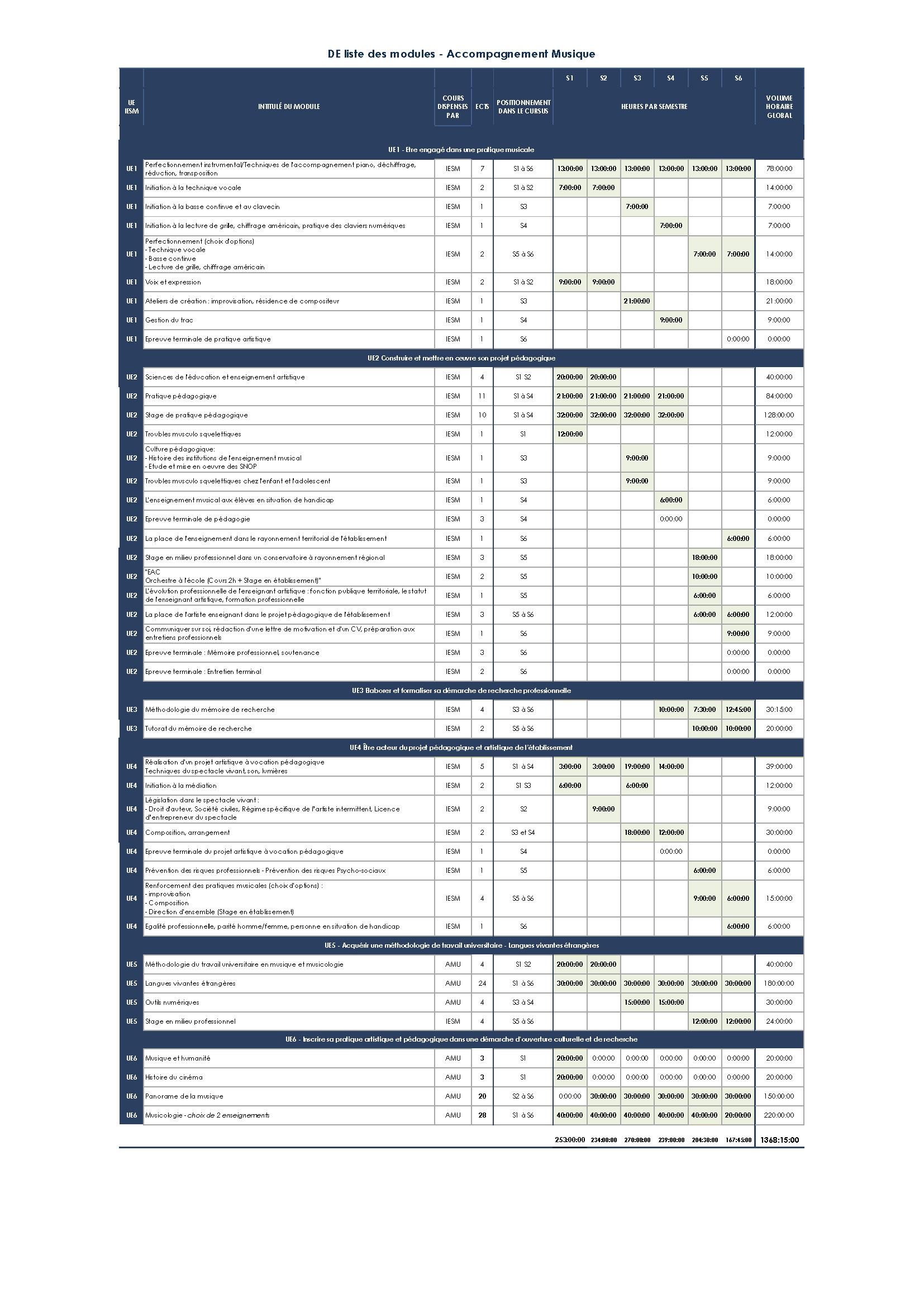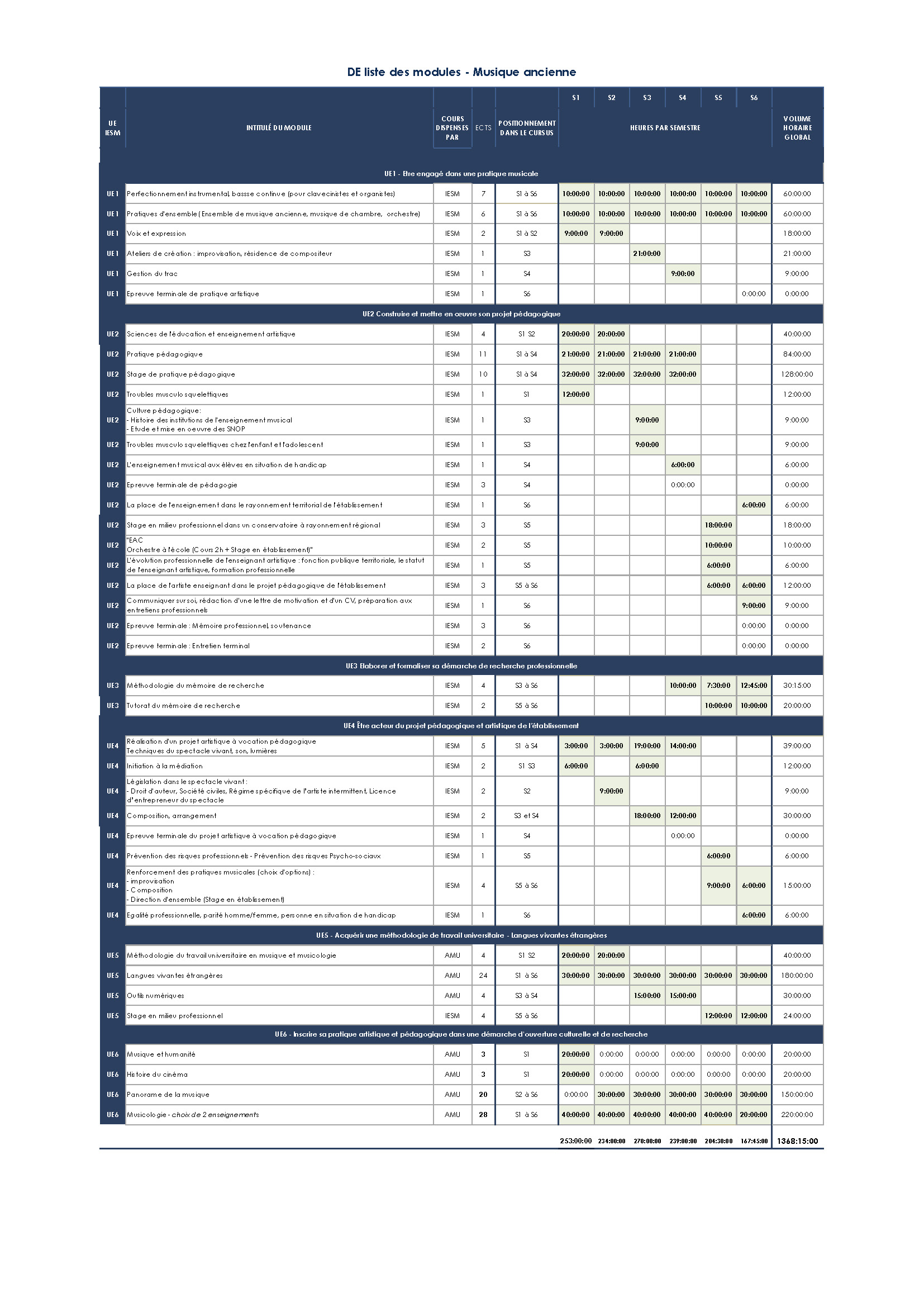 Les enseignements communs aux cursus DNSPM et DE sont acquis par VAA (validation des acquis antérieurs).