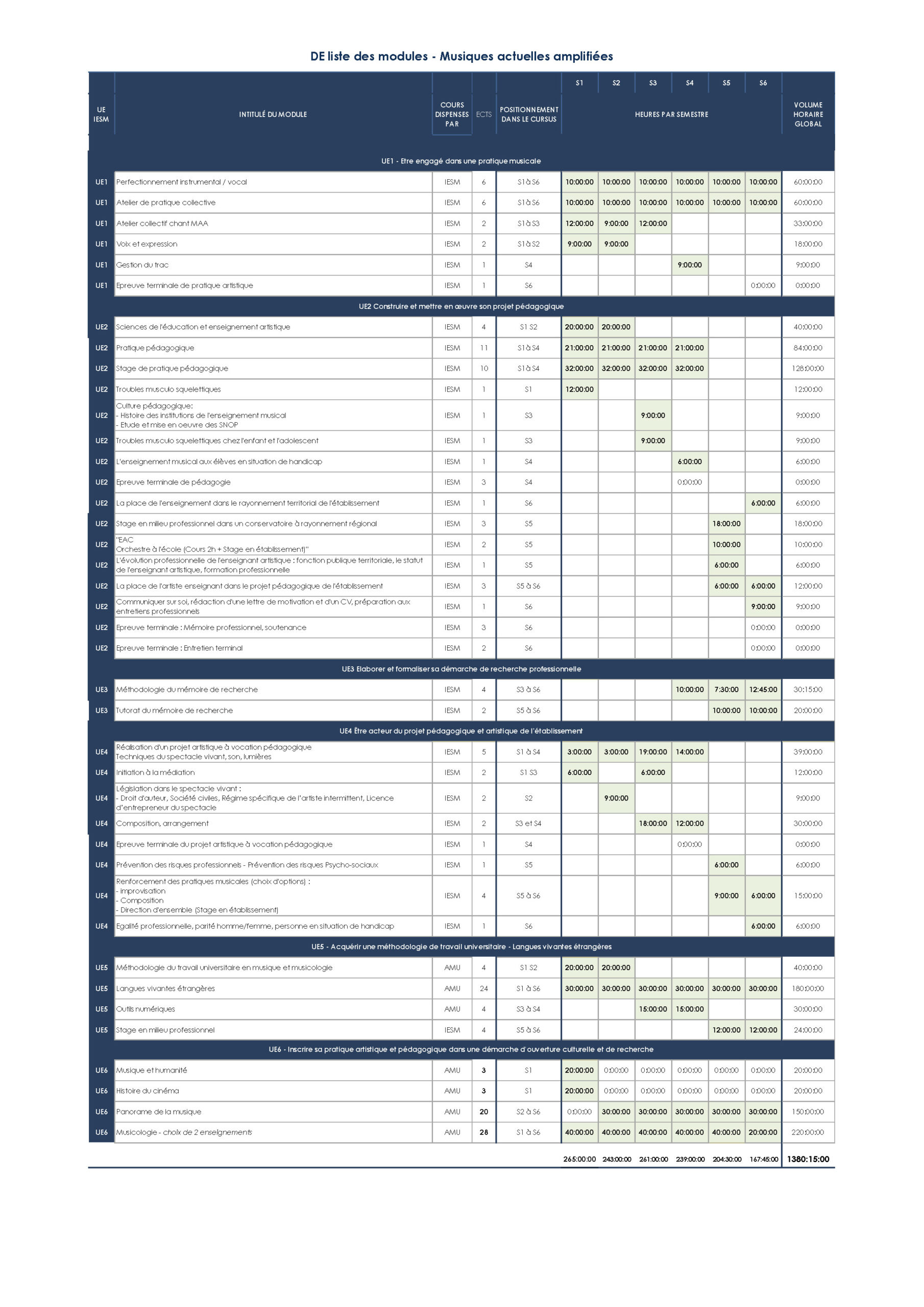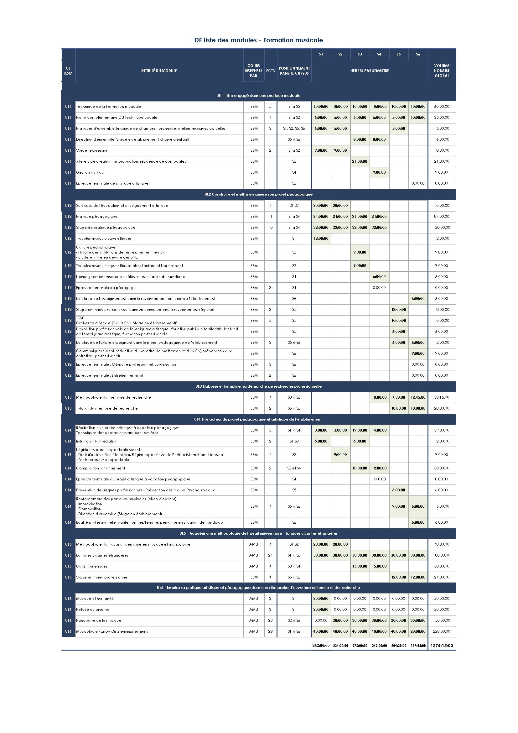 1. Organisation des enseignements du DE de professeur de musique dans le cadre d’un parcours articulé avec le DNSPM