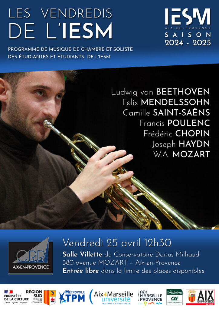 Les Lundis de l’IESM à la Maison des Arts de Cabriès – musique de chambre et soliste – Lundi 18 mars 2024 – 18h