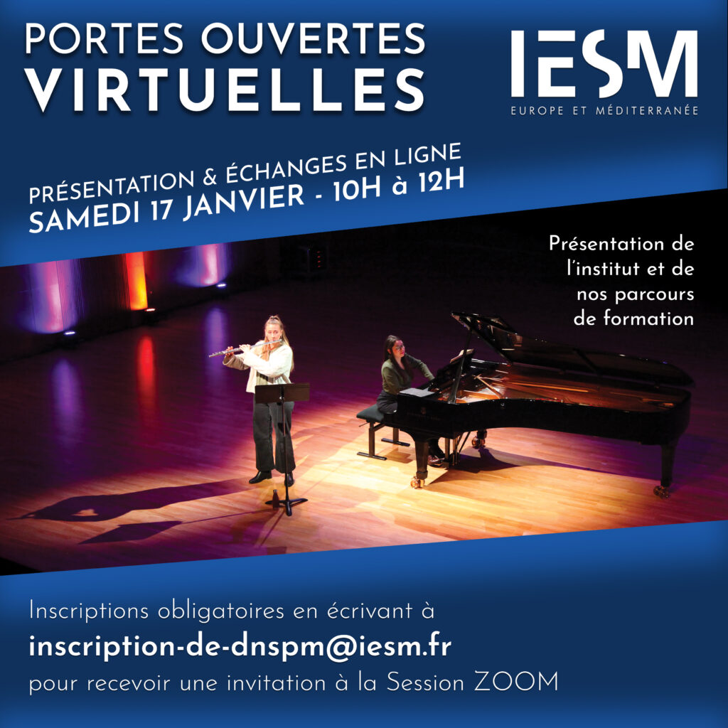 l’IESM d’Aix-en-Provence vous convie à sa Journée portes ouvertes virtuelles, samedi 17 janvier 2026, de 10h à 12h.
