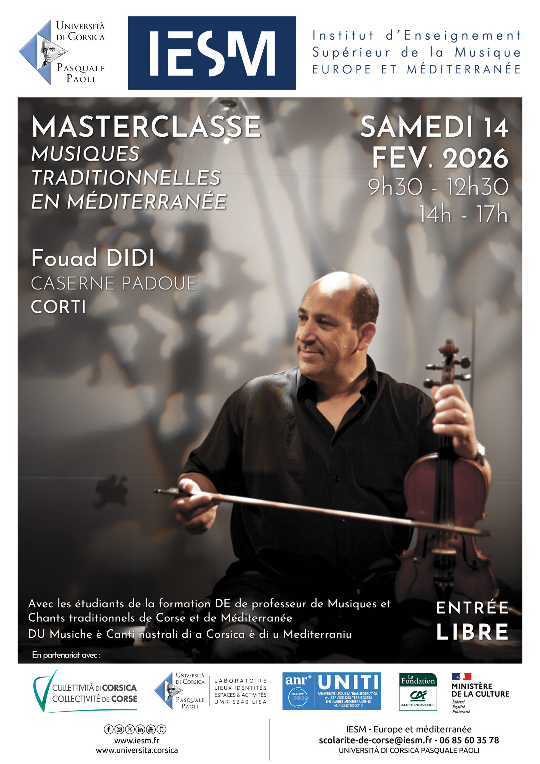 Fév 14 9 h 30 min - 17 h 00 min Masterclasse – Fouad DIDI – Samedi 14 février 2026 – Caserne Padoue – CORTI Gratuit